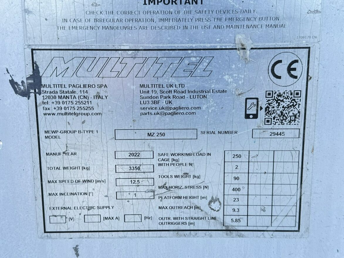 - Wysokość robocza: 25,10 m