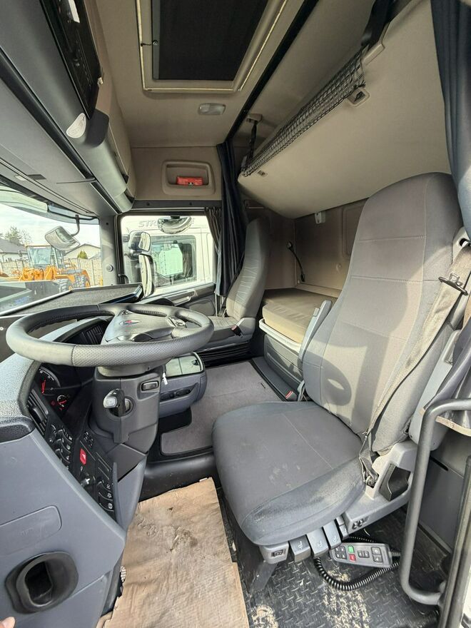 abs, immobiliser, centralny zamek, elektryczne szyby, elektryczne lusterka, halogeny przeciwmgielne, pneumatyczne zawieszenie, podgrzewane lusterka, webasto - ogrzewane postojowe, wspomaganie kierownicy, aeropakiet, blokada mostu, kabina sypialna, tachograf, blokada dyferencjalu, intarder, nawigacja satelitarna, ebs, bluetooth, tempomat, ASR (kontrola trakcji), ESP (stabilizacja toru jazdy), komputer pokladowy, lodowka